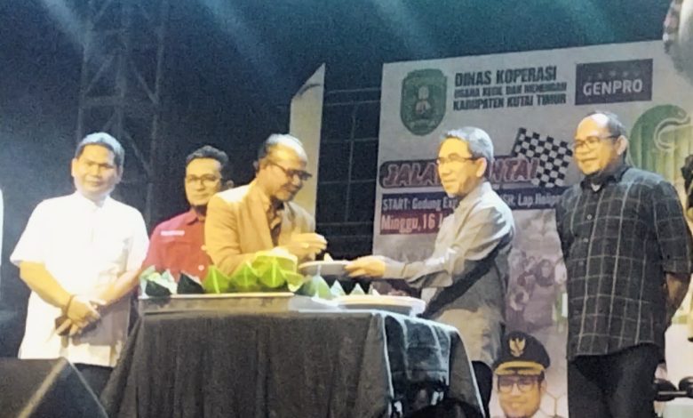 Kegiatan Bazar promosi UMKM bertema “Memajukan Koperasi Kunci Kesejahteraan Masyarakat” dalam Harkopnas 2023 Gebyar itu berlangsung dari 7-16 Juli. Ini atas kerjasama dengan Global Entrepreuner Profesional (Genpro) Kalimantan Timur (Kaltim). Turut hadir dalam acara pembukaan Wakil Bupati Kutim Kasmidi Bulang beserta sejumlah pejabat Pemkab Kutim, FKPD, dan tamu undangan lainnya. (adv/dm5).