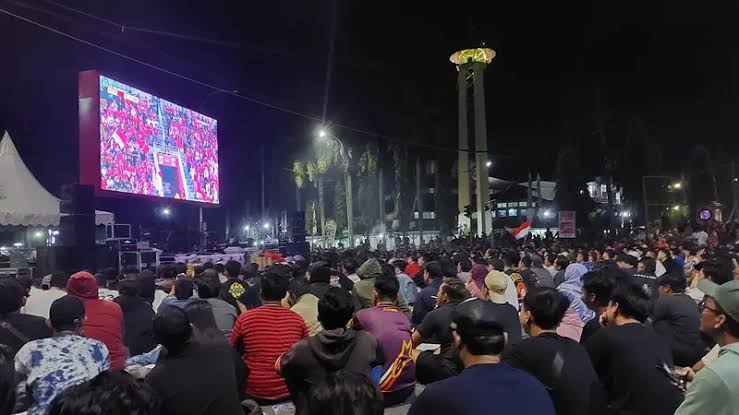 Masyarakat Tenggarong Penuhi Area Videotron Pendopo Bupati Kukar, Dukung Timnas U-23