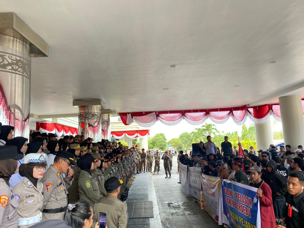 Aksi berlangsung tertib di bawah pengawalan ketat aparat Kepolisian dan Satpol PP. Para demonstran membawa spanduk berisi kritik terhadap pemerintah daerah, serta menyerukan agar bupati dan wakil bupati turun langsung mendengar keluhan mereka. Sorakan dukungan terhadap perbaikan tata kelola anggaran terdengar berulang sepanjang aksi.