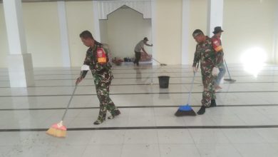 Koramil 0909-06/Bengalon Lakukan Aksi Jum’at Bersih Bakti TNI Dalam Rangka Menyambut Bulan Suci Ramadhan 1443 H