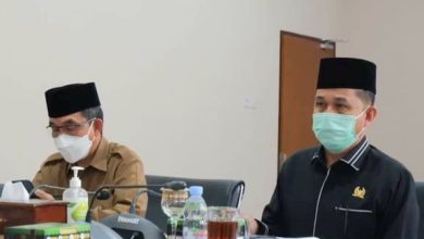 (TEKS – FOTO : Ist/DeltaMahakam) Bupati Kutai Timur Ardiansyah (kiri red),Ketua DPRD Joni duduk berdampingan saat melakukan bimtek (virtual)…