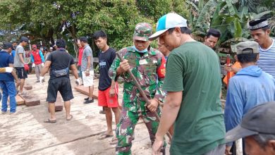 Dengan Semangat Gotong Royong,Koramil 0909-06/Bengalon Ikut Ambil Bagian Dalam Kegiatan Perbaikan Jembatan Penghubung Desa Bangun Jaya Dan Desa Kaliorang